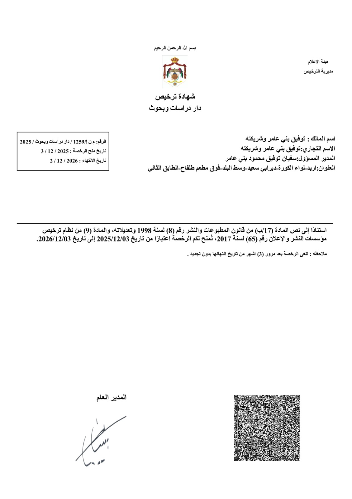 Noor Al-Elm Publishing and Distribution House is a specialized center for knowledge production and scientific research, officially licensed by the